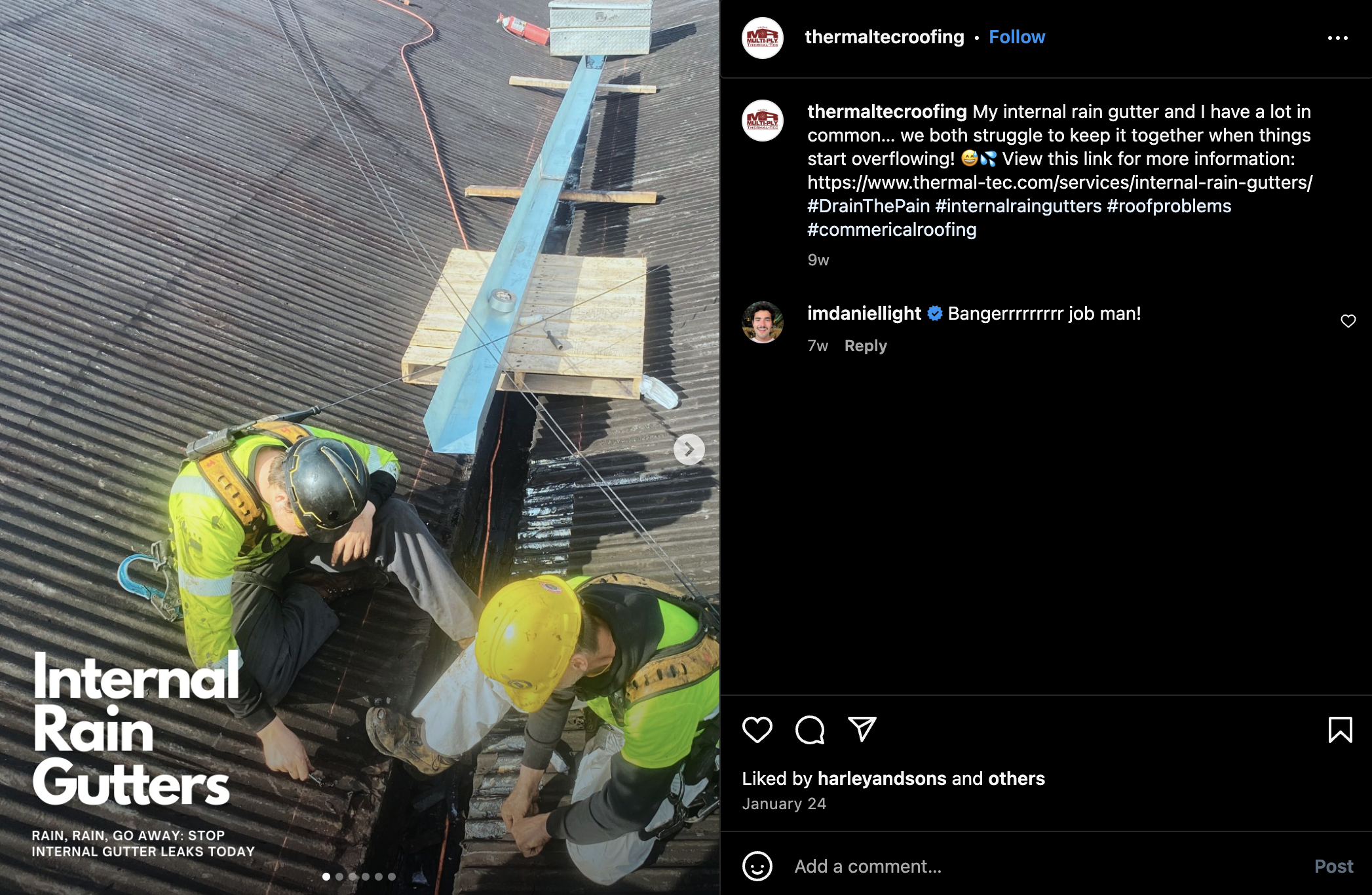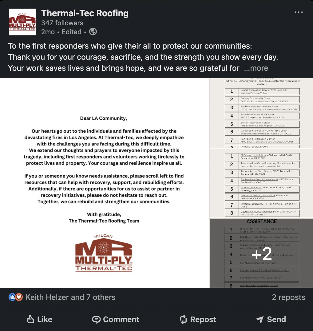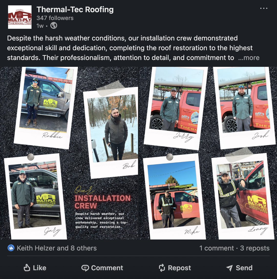 I handled the social media calendar for a roofing restoration company, with a key focus on expanding and enhancing its LinkedIn presence. My content strategy centered on blending educational and promotional topics, all while maintaining a friendly and engaging tone.