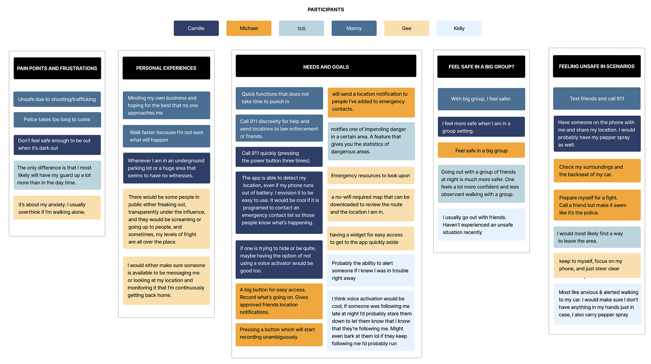 Following a series of enlightening user interviews, I gained valuable insights into the myriad challenges and frustrations that individuals encounter when navigating the intricacies of safety apps. These candid conversations provided a tapestry of user experiences, which in turn allowed me to identify and emphasize the recurring pain points that users face in this context.