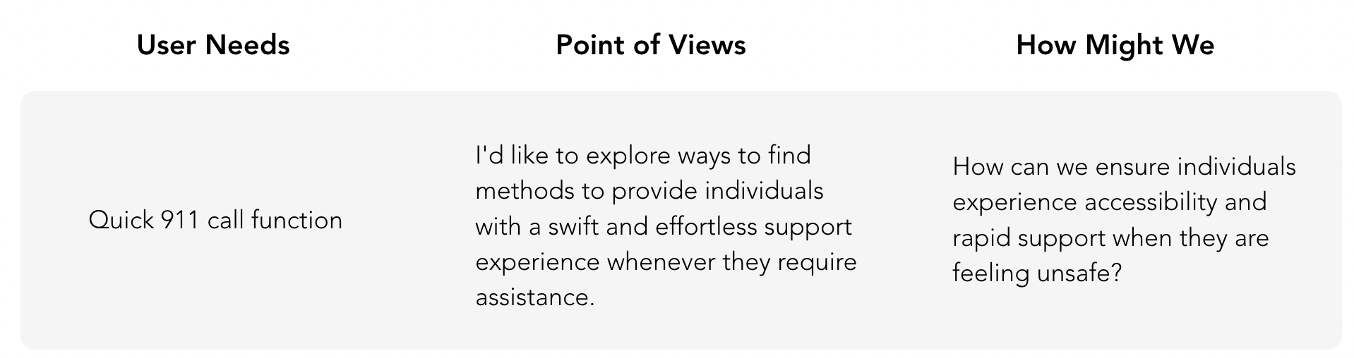 During my research synthesis, I successfully identified user needs, which led to the formulation of Point of View (POV) and How Might We (HMW) statements. These statements ultimately guided me in devising solutions to address the identified issues.